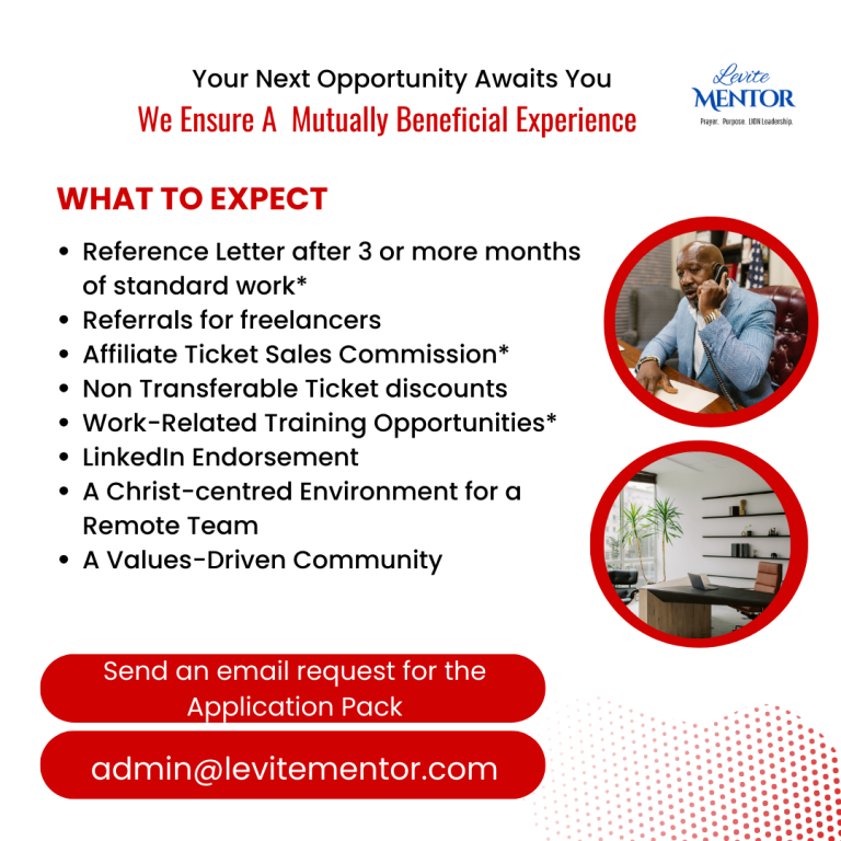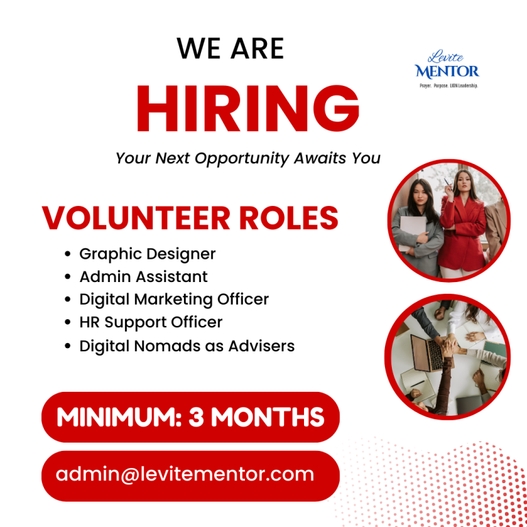 To apply for any of these roles, please send an email to admin@levitementor.com. Kindly include your name and contact number.